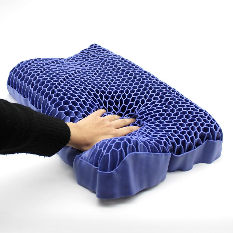Almohada cervical con estructura en panal de abeja y con memoria 3D. Gracias a su estructura se adapta perfectamente al cuello y cabeza con la curva diseñada para ser totalmente ergonómica; al terminar, la almohada vuelve a su posición inicial. Muy elástico y adaptable. Perfecto para dormir boca arriba o de lado. Su cuerpo lo hace increíblemente traspirable.