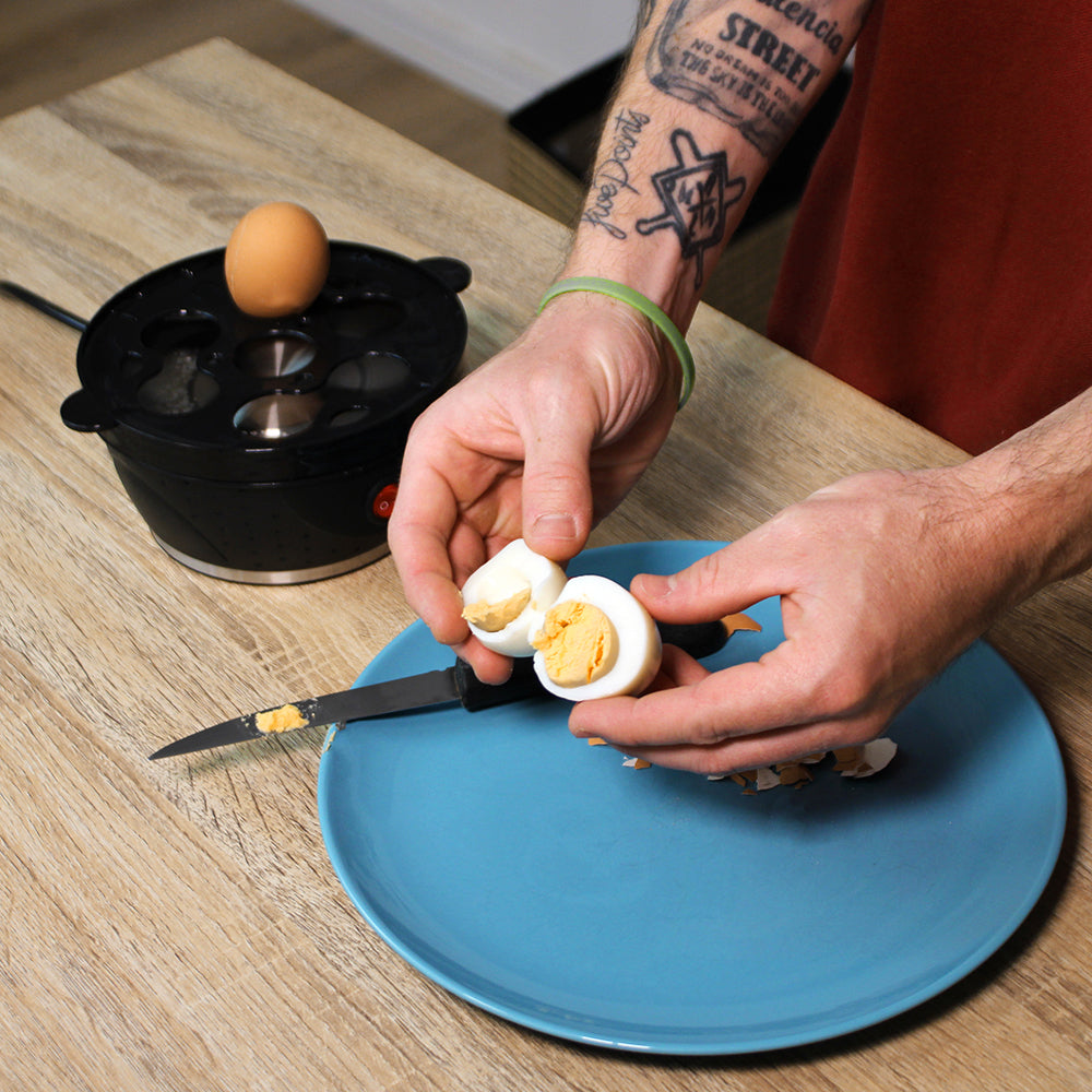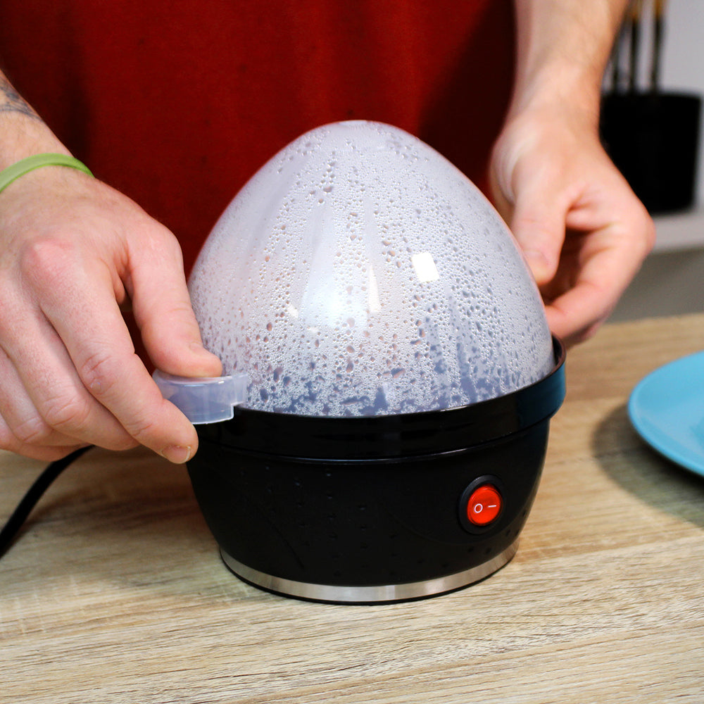 Hervidor de huevos ultrapotente para cocer hasta 7 huevos de una vez. Ya no necesitarás utilizar cazuela ni vitrocerámica. Tecnología eficiente y sin ruido. Cocina con tan solo pulsar un botón.