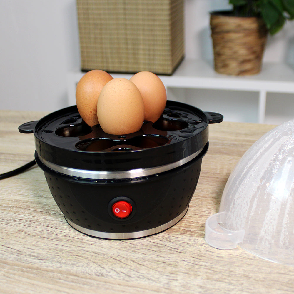 - Sus 320-380W de potencia consiguen cocer hasta 7 huevos de una vez.